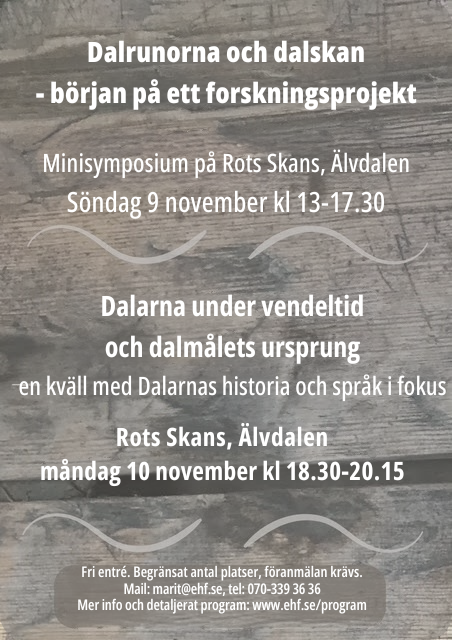 Dalrunorna och dalskan – början på ett forskningsprojekt. Minisymposium på Rots Skans, Söndag 9 november kl 13-17.30
